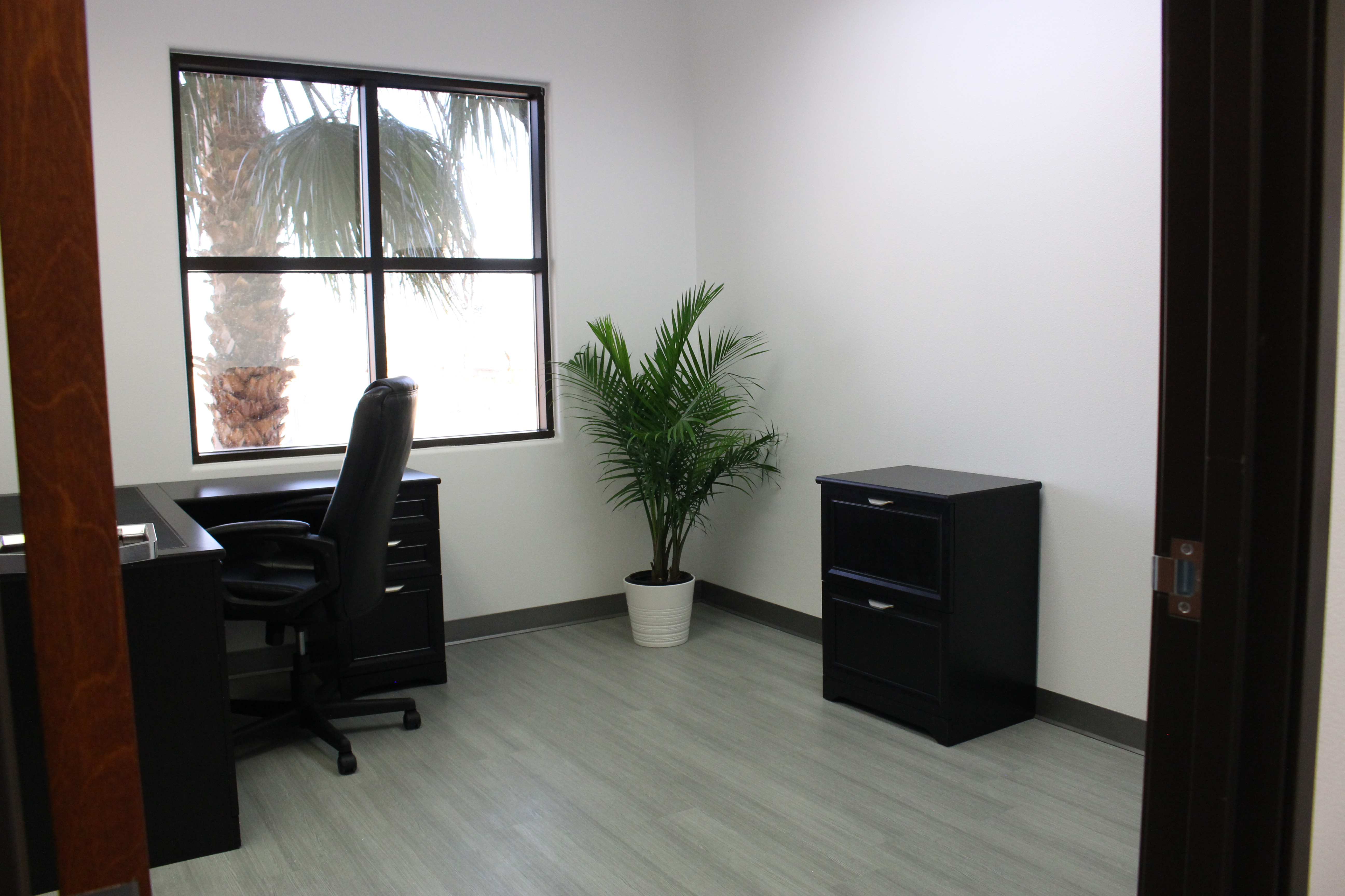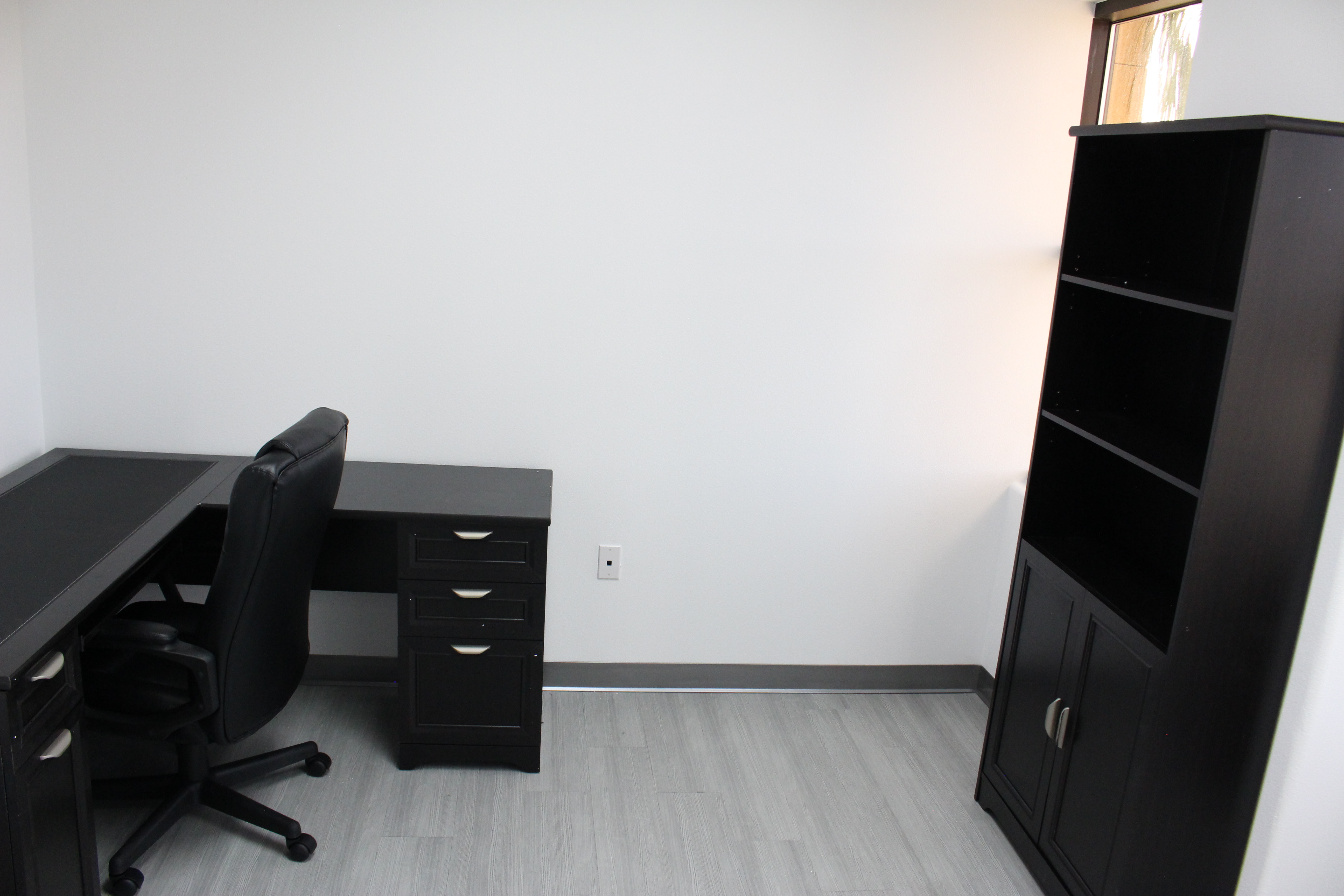 This cozy, fully-furnished office has one window to allow for natural lighting.